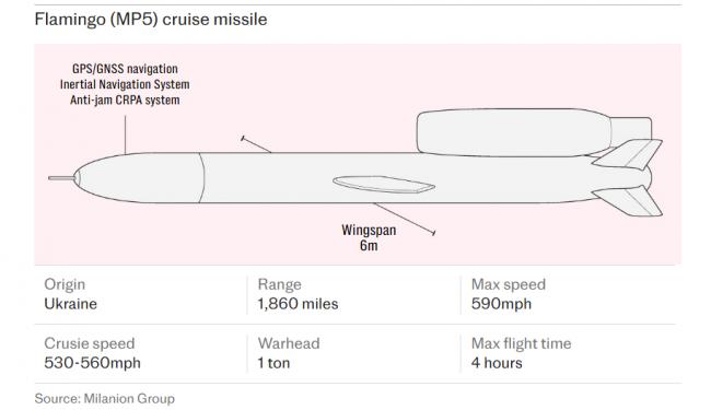 火烈鸟导弹是乌克兰国产旗舰导弹,射程可达3000公里。它携带的弹头重约1150公斤,由国防公司Fire Point开发。