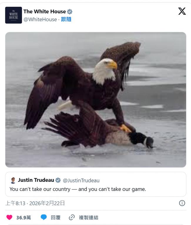 白宫更发布一张象征意味浓厚的图片----一只白头鹰俯冲猛扑加拿大鹅,被广泛解读为对加拿大前总理特鲁多一年前言论的回击。去年,特鲁多曾在美加关系紧张之际于X平台发文称:“你们夺不走我们的国家----也夺不走我们的国球。”此番美国夺冠并配图回应,令这场体育胜利蒙上政治色彩。