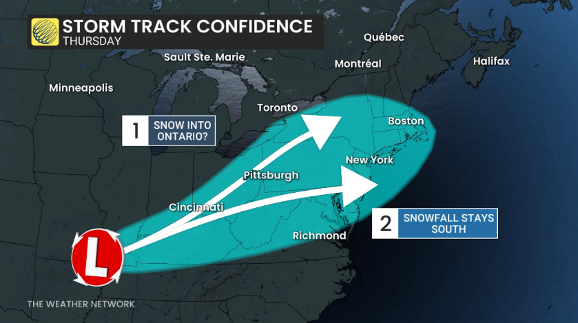 气象部门正在密切关注一个在美国境内形成的低压系统。该系统周四可能为GTA带来更多降雪。