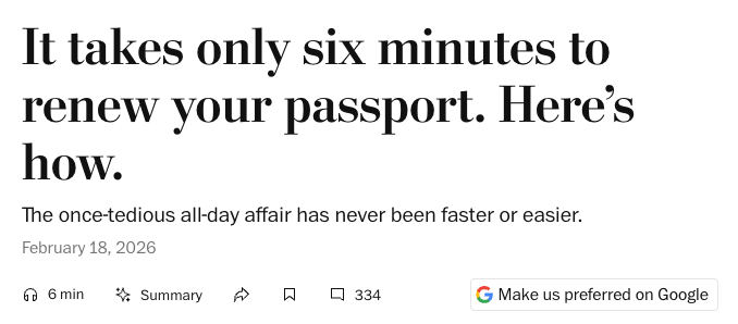 《华盛顿邮报》记者Natalie Compton近日通过在线系统提交护照更新申请后,仅用六分钟便完成了整个过程。17天后,她便收到了新护照,无需加急费用,也无需排队。她甚至可以在家中自行拍摄护照照片。她表示:“更新护照从未如此轻松,只需在线操作即可。”