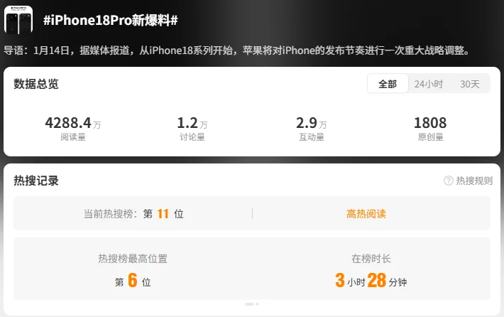 是因为机哥前阵子看到,关于iPhone 18系列的爆料冲上了热搜。