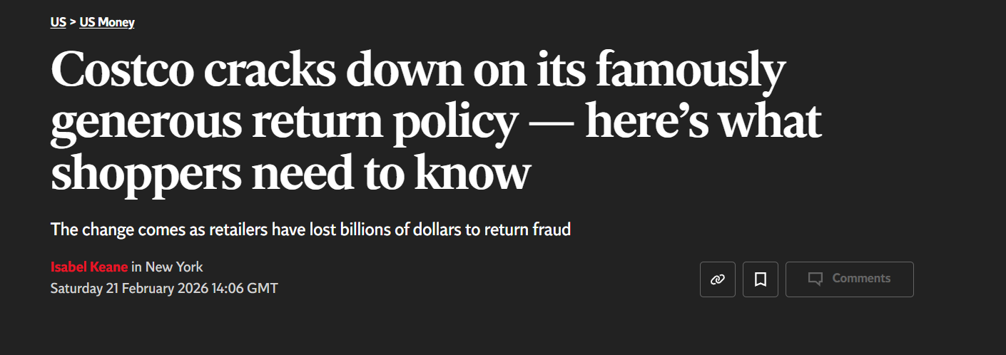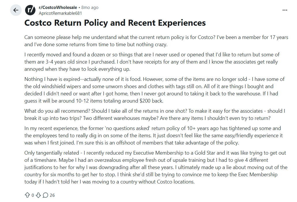 一些顾客在Reddit上表达不满。一名会员表示:“以前是‘不问原因’退货,现在员工会仔细盘问某些商品,感觉不像以前那么轻松友好了。”