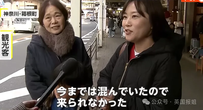 至于箱根这边...电视台随机采访到路人,日本本土游客称,之前听说这边有很多中国游客,所以一直没有来,这次听说人少了才过来玩玩。