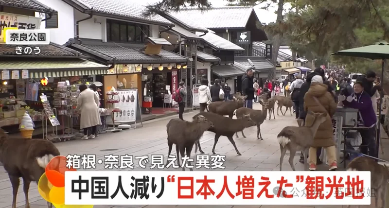 以箱根、奈良这种比较热门的旅游地为例。奈良原先占比1/3的中国人大量减少,走在街上几乎已经看不到中国人。