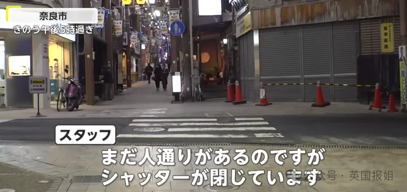 各种店家也受到不小影响。下午刚过5点,奈良的商店街已经大门紧闭。