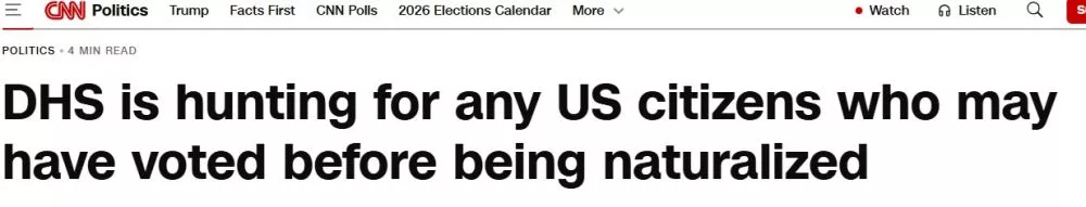 这一行动属于特朗普政府近年来持续推动 选举欺诈议题 的最新举措。政府官员不仅强调要调查“非法投票”和“注册违规”,还试图扩大联邦当局剥夺某些公民归化身份的权力。