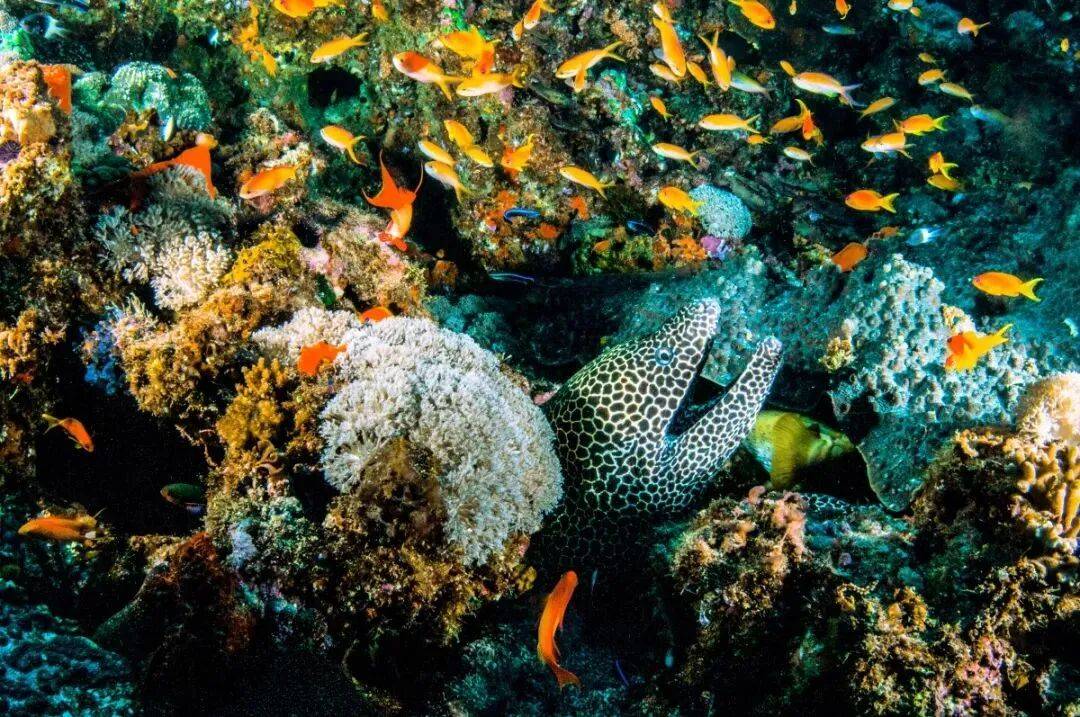 乘船便可到达,穿上潜水装备,一跃进入缤纷的海底世界,你会发现,膝盖深处就有五彩的热带鱼,拿块面包便会有大群鱼围过来!