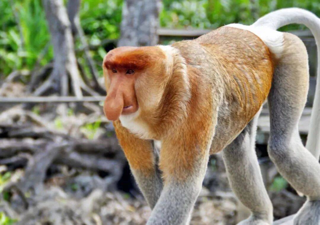 长鼻猴的鼻子大得出奇,其中雄性猴子随着年龄的增长鼻子越来越大,最后形成像茄子一样的红色大鼻子,所以它们也被称作“大鼻子情圣”。