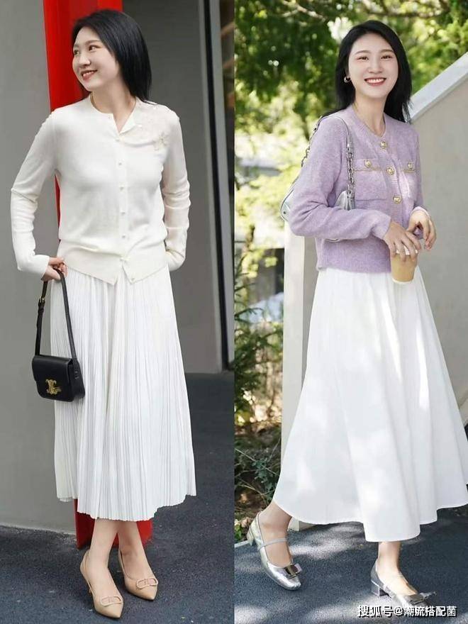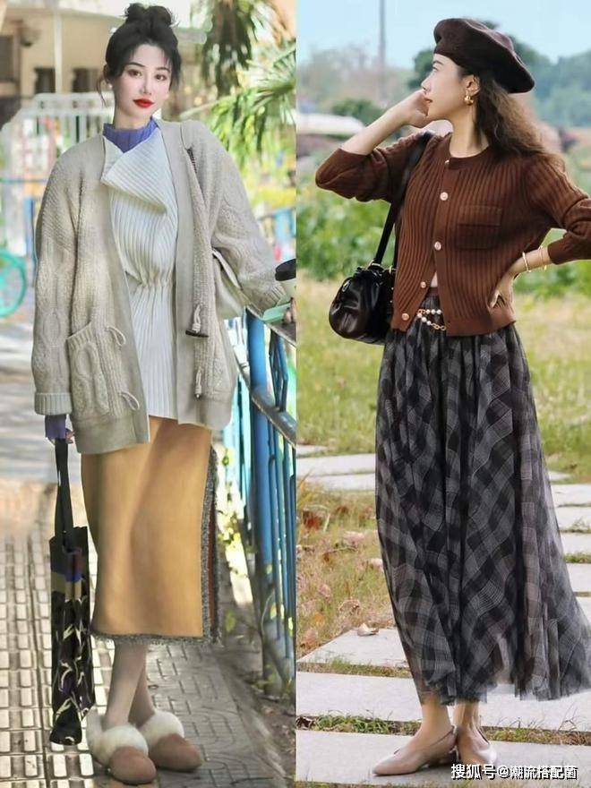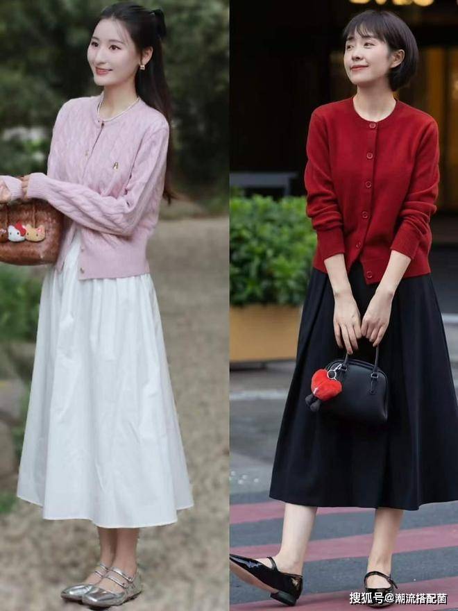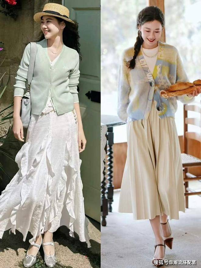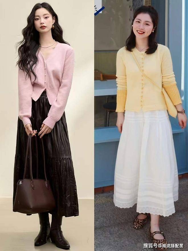 “小开衫+半身裙”的具体搭配示范,照着穿就对了