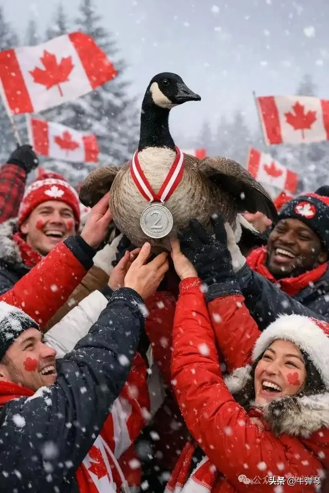 加拿大鹅受到了委屈,加拿大人的安慰方式,就是创作照片,加拿大鹅被高高举起,颈脖戴着银牌,宛如众星捧月,以此回应特朗普的羞辱。