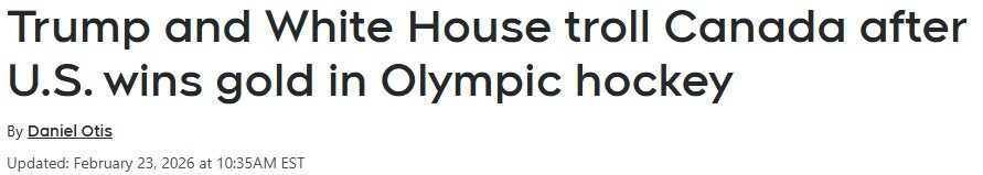 美国队在奥运冰球金牌赛击败加拿大后,白宫和总统特朗普随即在社交媒体上高调炫耀,并发布嘲讽加拿大的内容,引发争议。