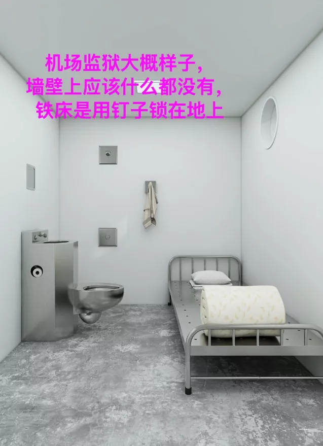 根据其描述,在等待返程期间,他被安置在机场一处临时拘留区域。该区域为封闭空间,内部陈设简单,包括固定床位、金属卫生设施及持续照明装置。他称自己在此停留至次日早晨,被工作人员带往登机口后乘机返回中国。