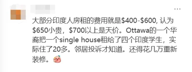 还有网友分享经历:“渥太华一个华裔房东,把独立屋租给四个印度学生,结果实际住了二十多人,最后邻居投诉才发现,房东花了好几万加币重新装修。”