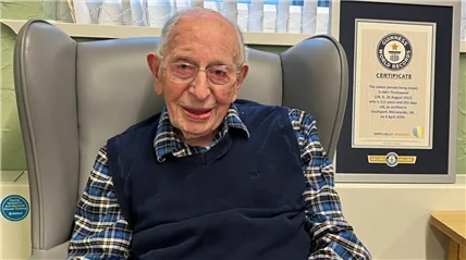 这位老人出生于英格兰西北部港口城市利物浦,经历两次世界大战,如今居住在一家养老院里。