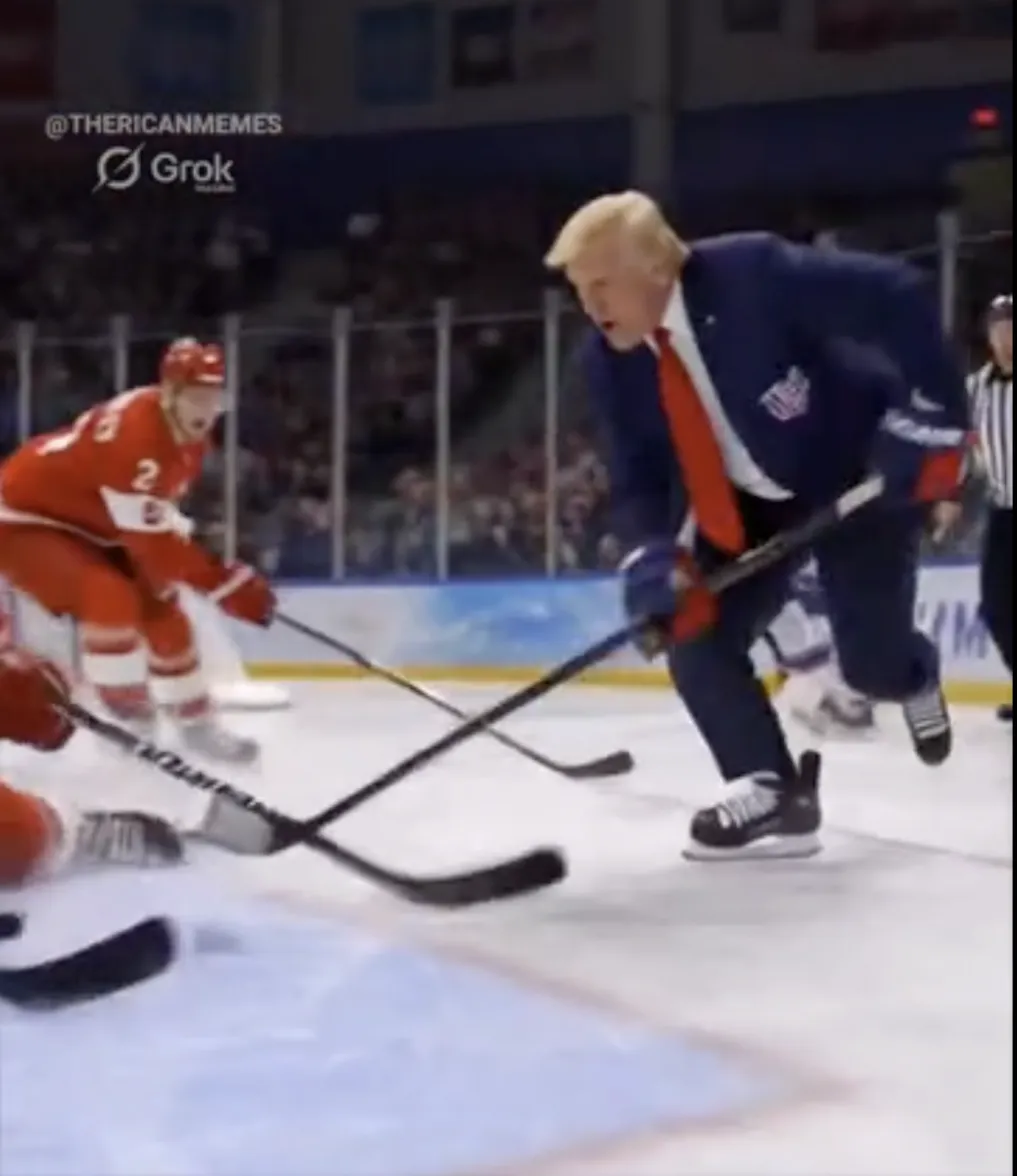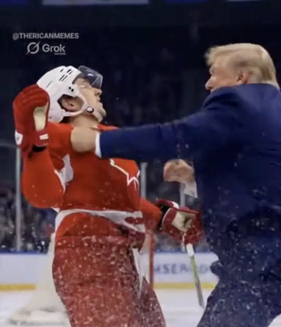 据“今日俄罗斯”(RT)电视台报道,美国总统特朗普当地时间23日在社交媒体上发布一段由人工智能(AI)生成的视频,视频中,美国队与加拿大队在冰球场上激烈角逐,特朗普则化身美国冰球运动员,手持球杆屡屡进球,甚至当场殴打对方。