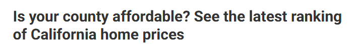 以下为CAR最新数据显示的加州各县单户住宅中位价排名: