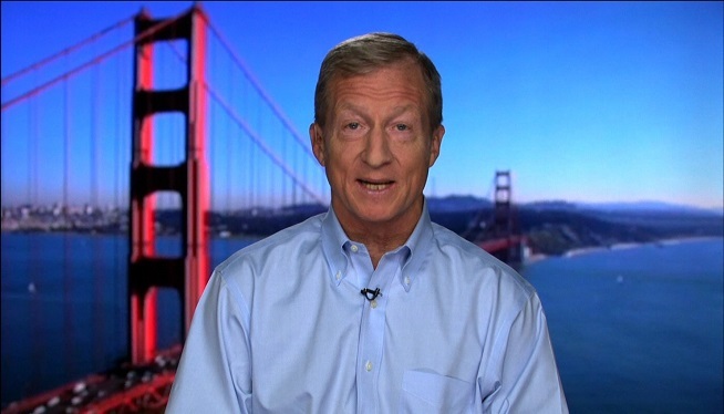 13日由两名代表圣荷西的加州议员出席的新闻发布会,彰显了史泰尔日益壮大的「以亿万富翁对抗亿万富翁」(it-takes-a billionaire-to-fight-one)战略,这也正是其竞选活动的核心。