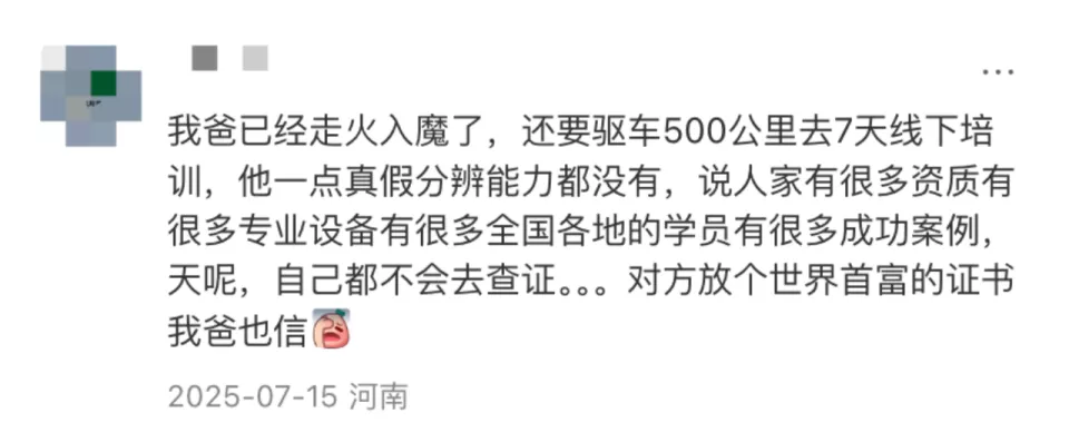 而早就试过堵不如疏、多加监管、平时多关心等防诈招数的一批年轻人早就悟透:无论子女怎么干预,大概率唯一能改变的,只会从父母想带你学,变成父母背着你偷偷学。