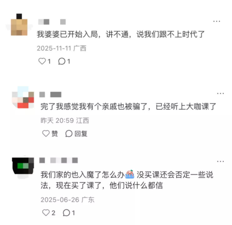 已经被家里沉迷AI网课老人逼疯的不孝子女中,也有人开始反思: