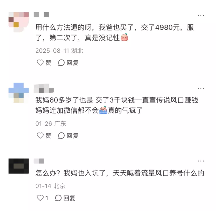 收益少得可怜,老年人在白忙一场中变现遥遥无期,去问机构和老师永远是“你还不够努力”的新一重PUA。