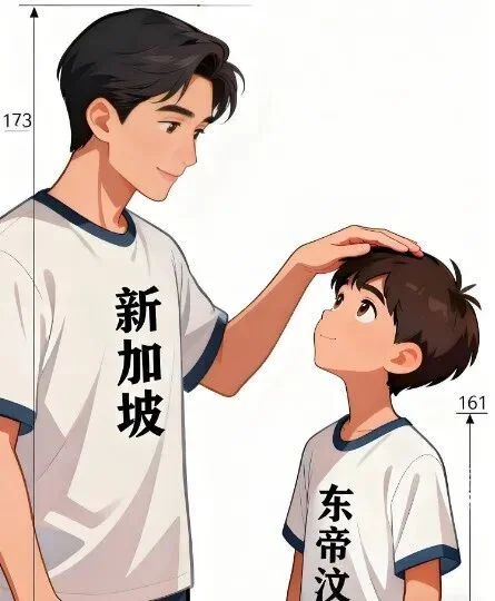 东帝汶以161.54厘米位列东盟末位,同时处于全球最低水平,与新加坡相差超12厘米。