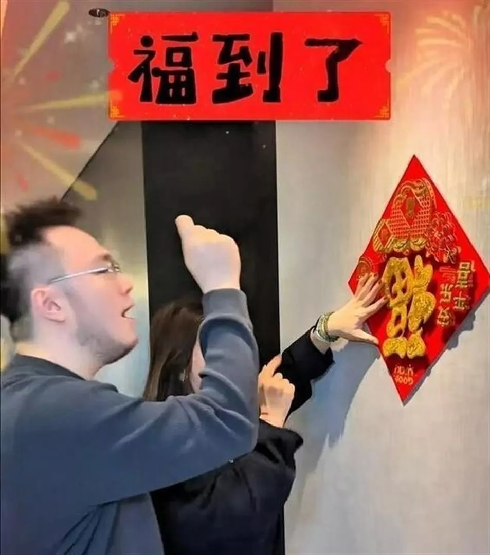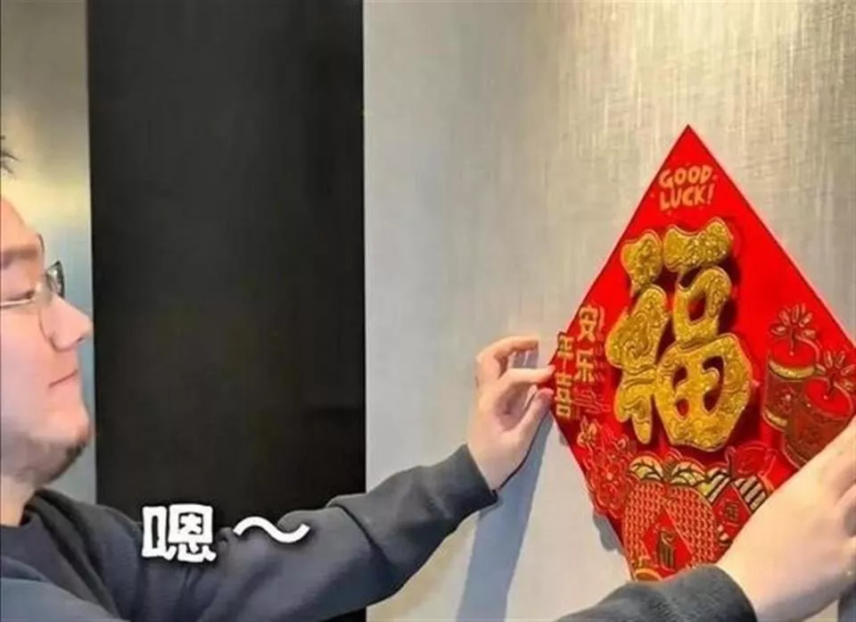 他们正在贴福字。