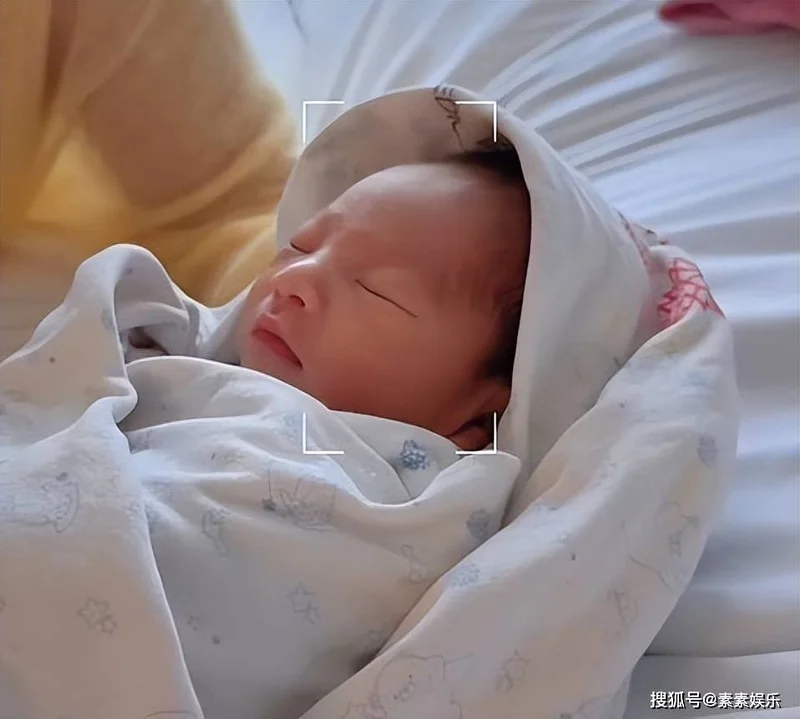 产子之后的她面色红润,她手指着小宝贝,一脸的骄傲。