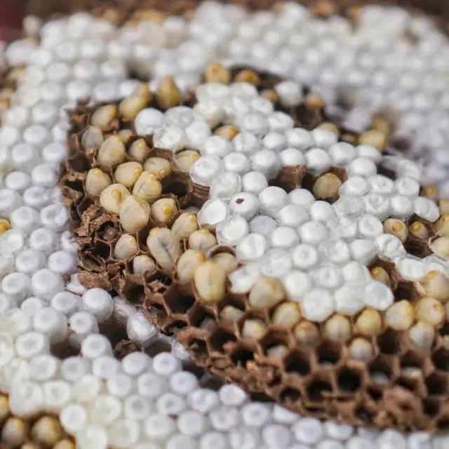 油温烧到六成热,蜂蛹下锅,蛋白质遇到油锅迸发出焦香,不一会表皮就会鼓起细密的小泡,颜色也从乳白变成诱人的金黄。捞出来沥干油,那味道能充满整个屋子。