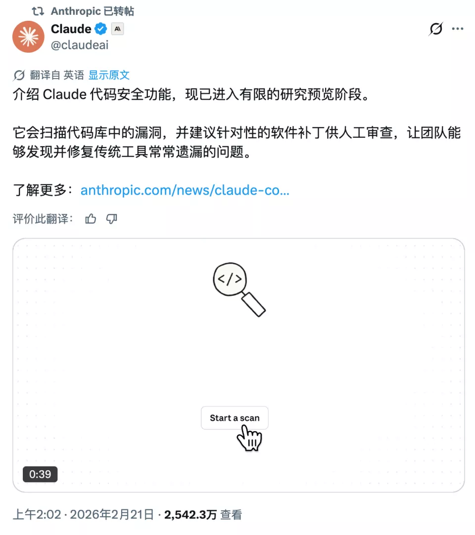 导火索是 Anthropic 宣布推出 Claude Code Security。