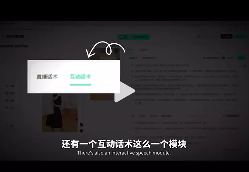 在右边这边的话还有一个互动话术这么一个模块,我们可以去调整我们的Q&A的问答的一个知识库,有一些就是观众可能问到的问题,然后它暂时还没有学习到的话,我们可以在这个知识库里面进行一个补充。