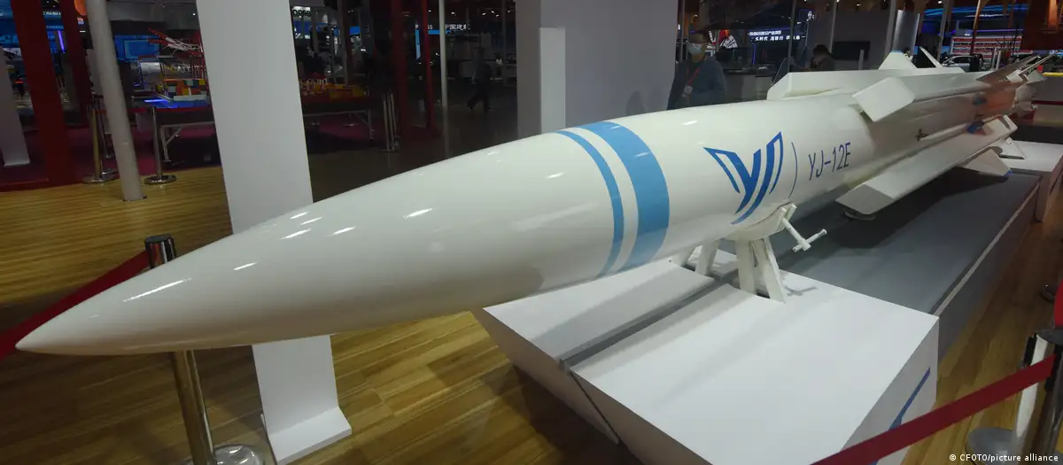 CM‑302一般认为是中国海军自用型鹰击-12反舰导弹的出口版本(图为23年中国品牌日上展出的YJ-12E反舰导弹模型)。图像来源: CFOTO/picture alliance