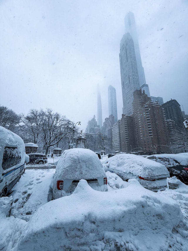 从杜德伟拍下的相片可见,整个纽约变得白茫茫一片。(杜德伟提供)