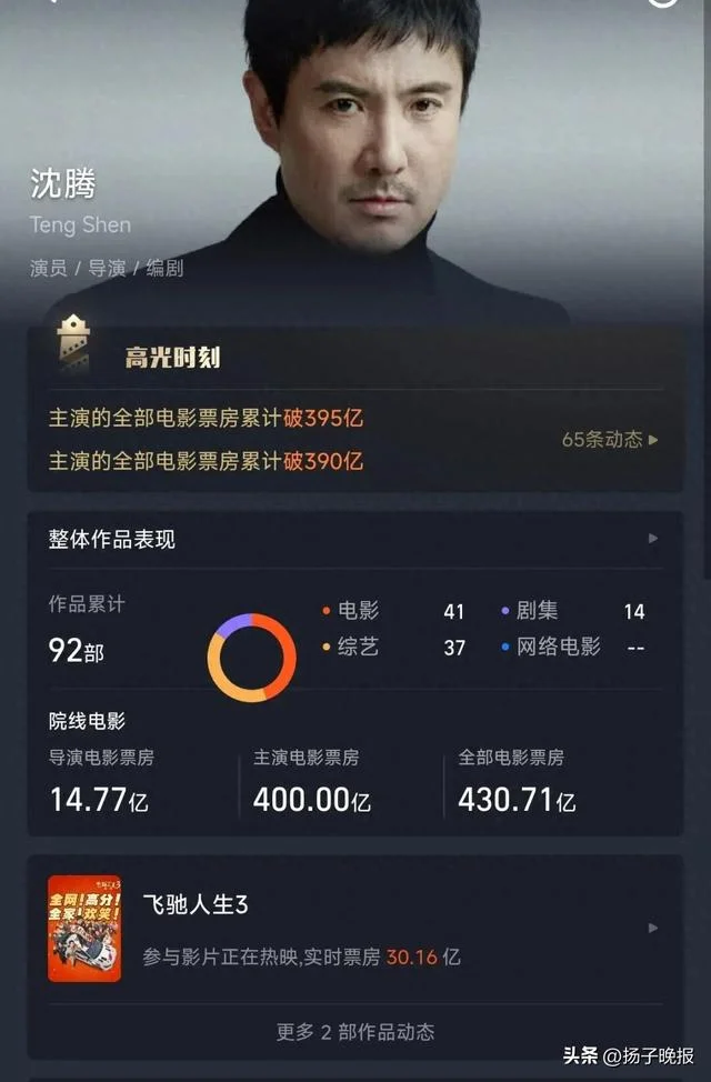 沈腾成首位主演电影票房破400亿演员扬子晚报