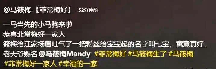 第二个争议更大,就是宝宝的小名。张兰在直播里说,孩子是正月初七出生的,又是家里最小的宝贝,所以小名叫小七宝,也有叫小马驹、小马宝。这个名字一出来,很多网友立刻联想到汪小菲和大S的两个孩子——汪希玥小名叫小玥儿,汪希箖小名叫箖箖,都没有带“宝”字。