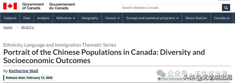 近日,加拿大联邦统计机构首次系统性地发布《在加华人口与社会经济状况报告》。报告涵盖了出生地和居住地、年龄、语言、移民背景、宗教信仰、程度、职业、收入,以及社会融入感受等方面的信息,以详实数据描绘华裔群体整体发展状况。