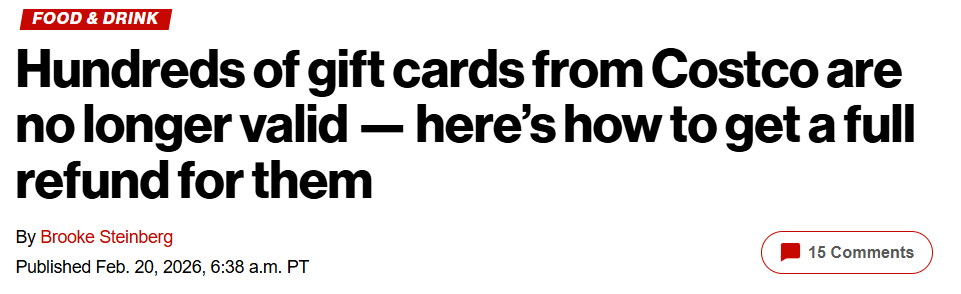 Costco表示,第三方发行方Synergy Gift Card Network/Synergy World已通知公司,将自2026年1月31日起停止运营。因此,所有尚未使用的礼品卡余额已于1月31日正式失效。