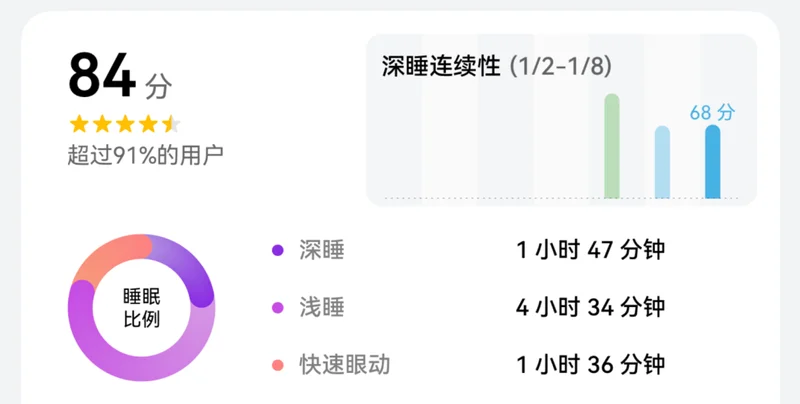 如果看到 APP 显示昨天睡了八小时,深睡接近两个小时,分数给了个 80 分,那我这一整天都感觉神清气爽。