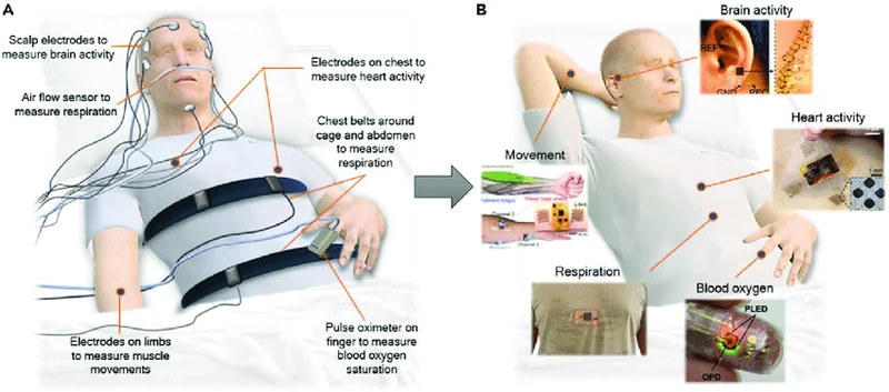 OK,搞懂了睡眠的阶段,咱再看医学上是怎么监测这些阶段的,对比之下就知道手表的监测有多 “ 简陋 ” 了。