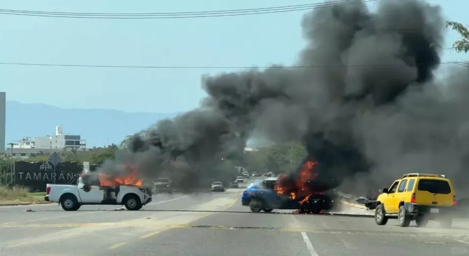 自媒体博主“嗷姐”正在巴亚尔塔港(Puerto Vallarta)旅游,她称自己在当地时间22日上午本来想去观鲸,结果没赶上,就改道去附近一个小镇看周日集市,“刚进山路,所有对向车都打双闪,一开始还以为是什么传统,开了两分钟以后发现发生了车祸,有人躺在地上,我们不敢下车,继续往前,谁知山路被五辆车堵住了,不是车祸,是故意堵路,掉头到高速路口,发现有两辆车火光冲天,路口浓烟滚滚,我们吓得赶紧回到酒店,在我的房间还能看到高速路口的浓烟。”