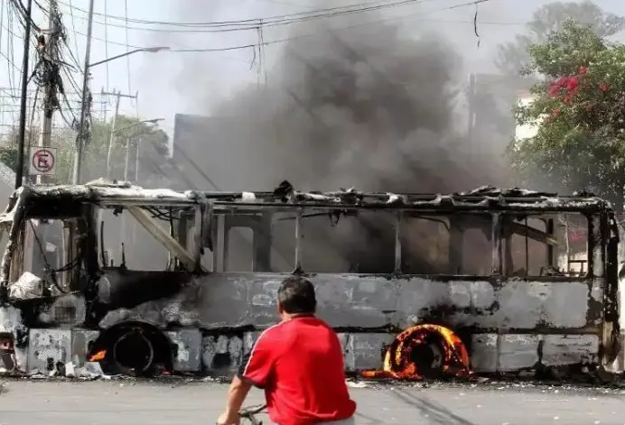 据《上游新闻》报道,一名正在墨西哥瓜达拉阿拉旅游的中国游客小羽称,其所在的酒店已经关门不允许外出。他22日外出时,看到路上有两架巴士和一架私家车已经被焚烧,当时还未戒严,但街道上已经没有人了,而他当时还未意识到发生什么就将画面拍下,事后才知是当地毒贩所为。