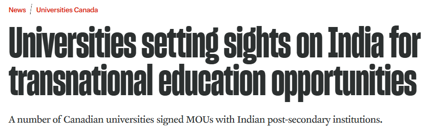 近日,加拿大高校领导组成的代表团最近访问了印度,旨在加强两国在经济和学术上的联系。这次由Universities Canada牵头的代表团共有 21 位大学校长,他们会见了印度政府官员以及高校和私营企业的负责人。期间,加拿大大学与印度多所高等院校签署了十余份跨国教育合作谅解备忘录(MOU),推动教育合作机会。为期五天的访问是加拿大与印度一系列交流的开端,最终将在 3 月初由加拿大总理Mark Carney访问印度时达到高潮。Gabriel Miller(《University Affairs》出版方)表示,此次访问将大学置于加拿大重新调整全球经济关系的核心位置。他指出:“值得注意的是,这次任务发生在一个非同寻常的时刻,让大学成为国家重塑经济、重新定位全球角色的重要支点。”