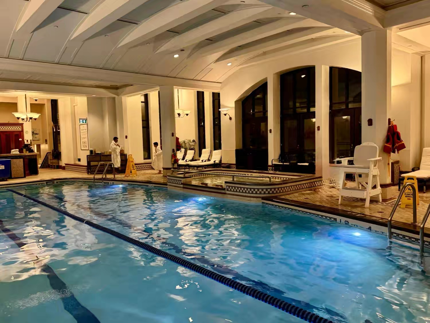 安顿下来先去泳池放松一下,再回房间小酌一杯,边品酒边欣赏古堡外的圣劳伦河夜景,然后再去酒店餐厅享用晚餐…