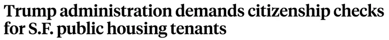 据旧金山知情人士透露,至少有一栋大楼的居民已收到“最后通牒”。一家非营利住房机构证实,上周接到通知,部分租客必须在15天内补交文件证明身份,否则后果自负。