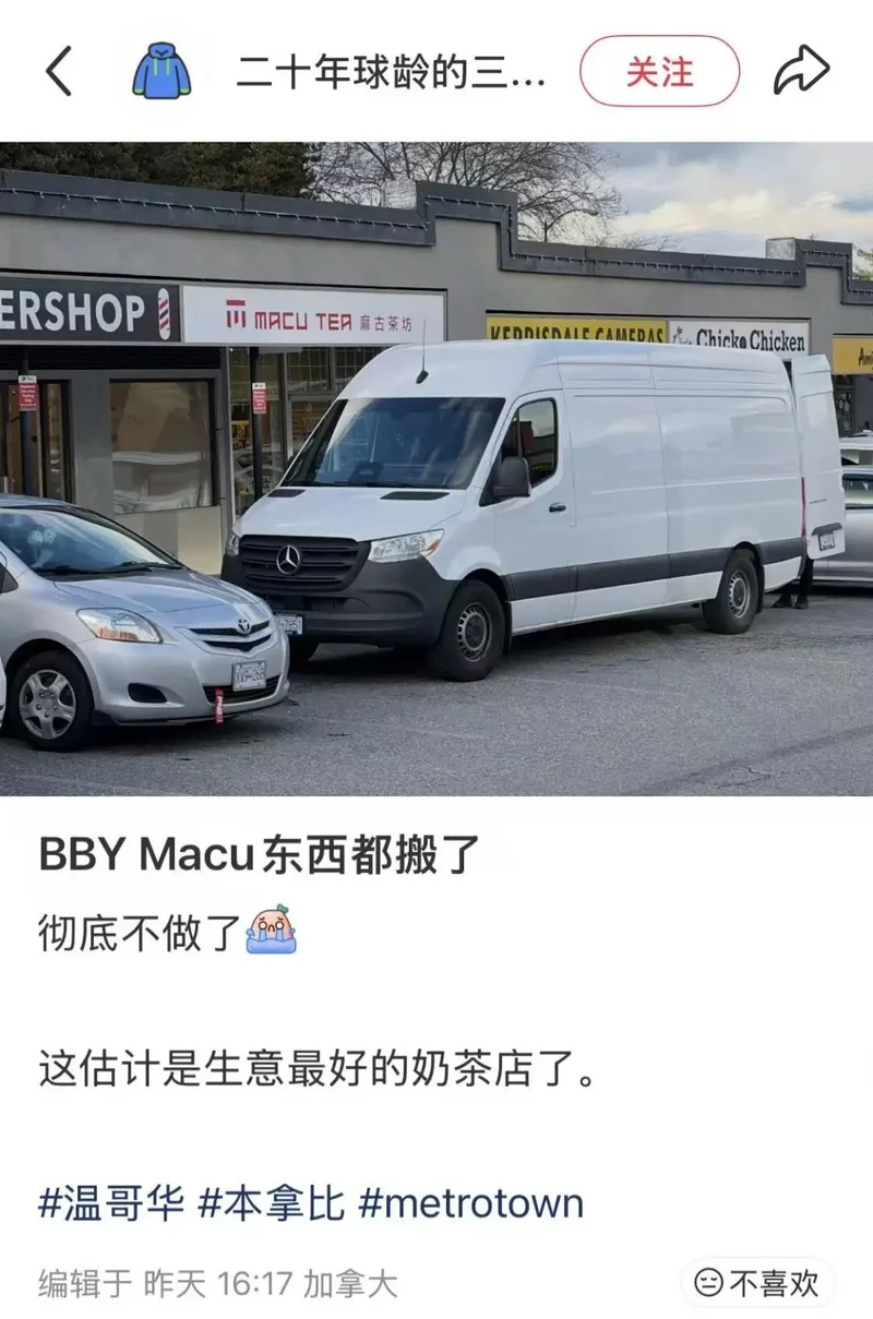又一家受欢迎的饮品店撑不住了!大温奶茶连锁Macu Tea(麻古茶坊)刚刚宣布,大温四个门店里将关掉两个,从昨天(2月23日)起正式生效。