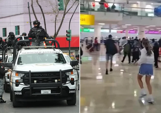 空中混乱,航班取消。对于试图离开墨西哥的旅客来说,情况一片混乱——他们想逃离贩毒集团头目被击毙后带来的暴力和破坏。