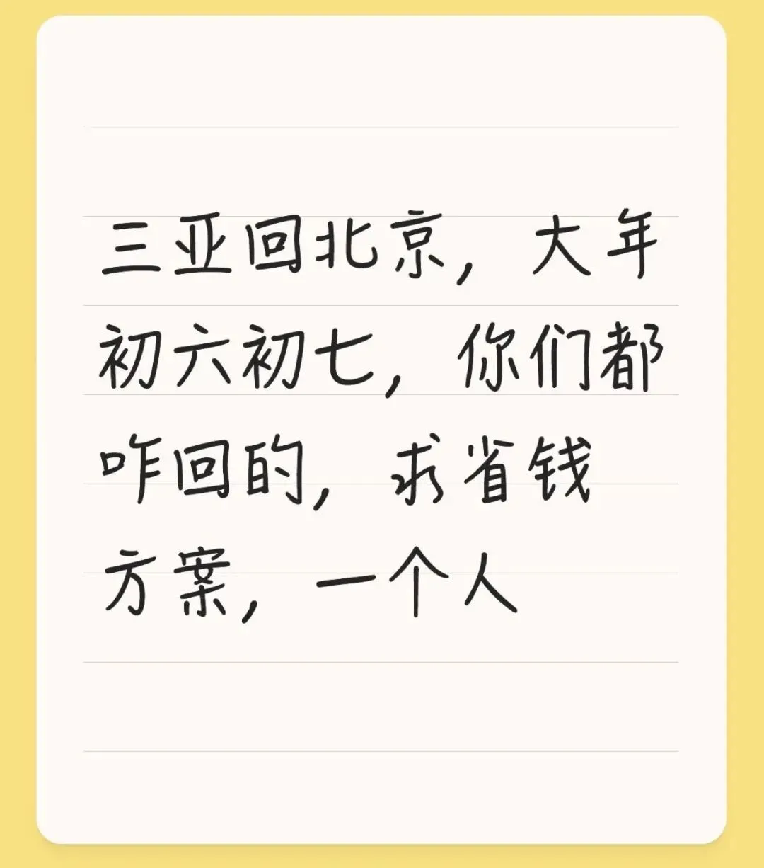 很快,被旅行磨练得训练有素的网友们就总结出若干条不用万元飞回家的方法: