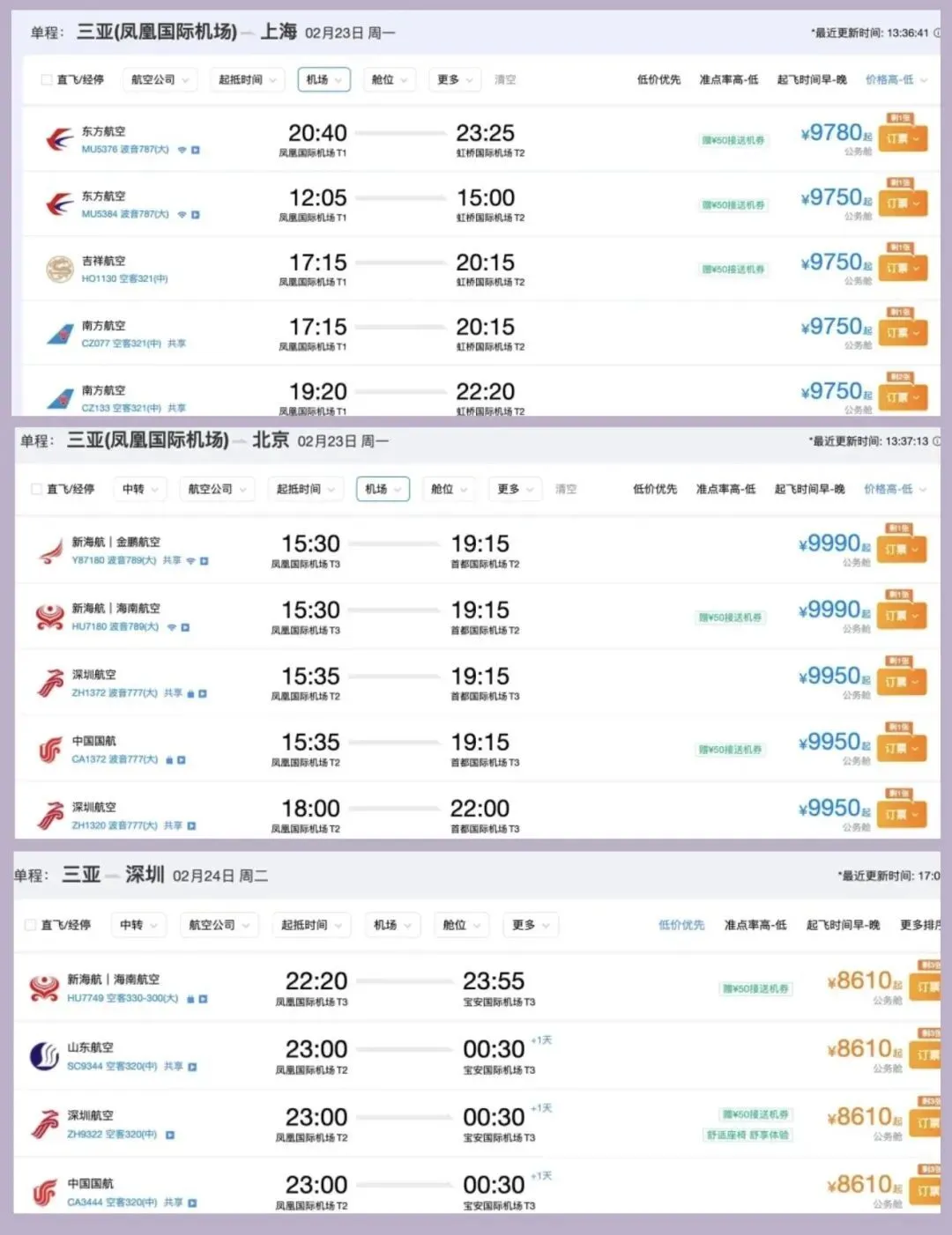 拿着小几百块钱机票上岛的朋友们,看着一万起步的离岛票,简直不敢相信自己的眼睛: