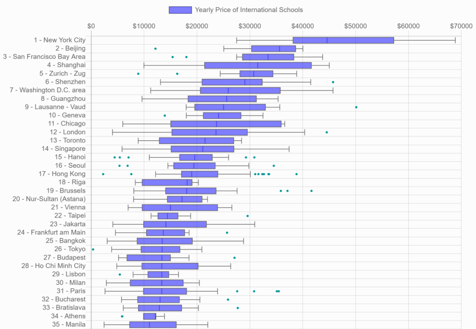 根据国际学校信息平台最新数据,北上广深均挤进全球最贵国际学校城市TOP10,而曼谷仅排第25位。