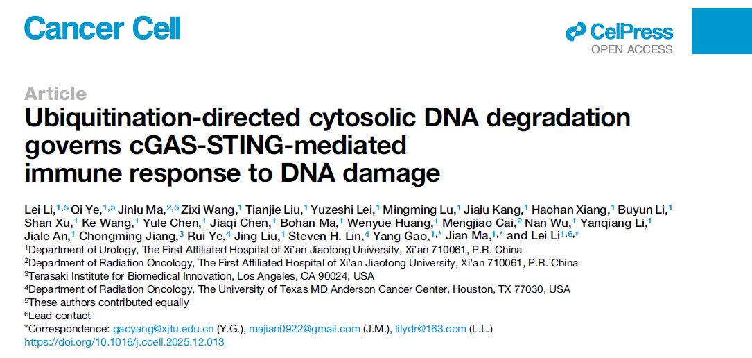 近日,西安交通大学第一附属医院李磊、马坚、高杨团队在《癌细胞》上发表研究成果。该研究聚焦放疗联合免疫治疗临床效果不佳这一关键问题,揭示了肿瘤细胞对放疗诱导免疫激活的内在调控方式,为理解部分患者对放射免疫治疗不敏感提供了重要依据以及新的治疗策略。