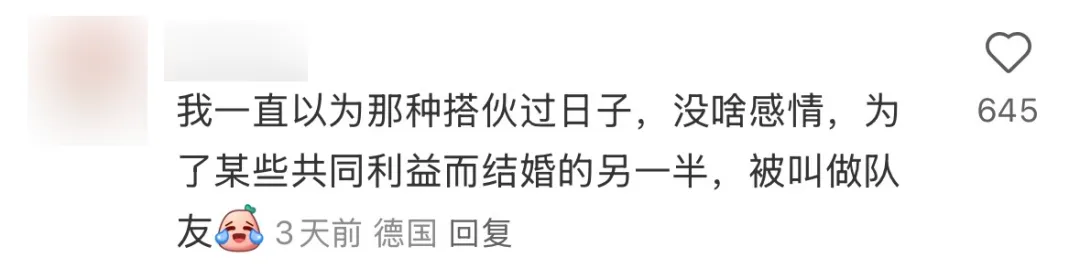 前者好奇:再憧憬结婚生子的年轻人,听到已婚前辈们一句队友,也会觉得性缩力拉满吧。